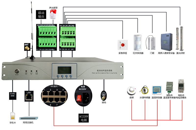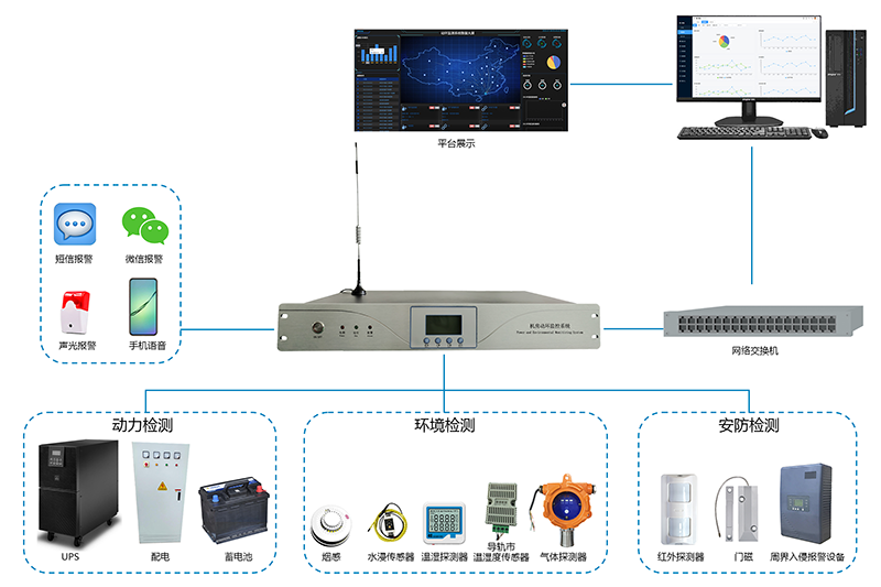 動環主機是一款集動力環境監控功能及入侵防盜報(bào)警於(yú)一體的設備,可實時監測機房、基站等場所的動力設備運行狀态、環境參數、入侵報(bào)警,如市電、UPS、蓄電池、溫濕度、煙霧、漏水、門禁