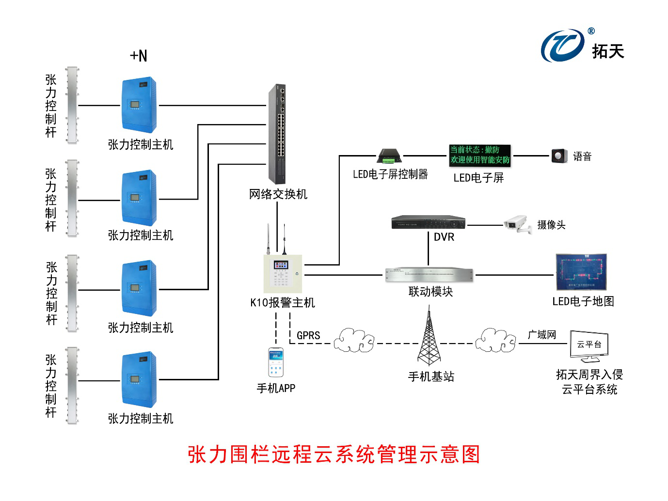 全面支持接入脈沖電子圍欄、張力電子圍欄、洩漏電纜、振動光纖 、地址碼等周界報(bào)警設備,並(bìng)實現集中統一管理 。雲平台軟件可以連入多達幾百個GPRS報(bào)警主機。