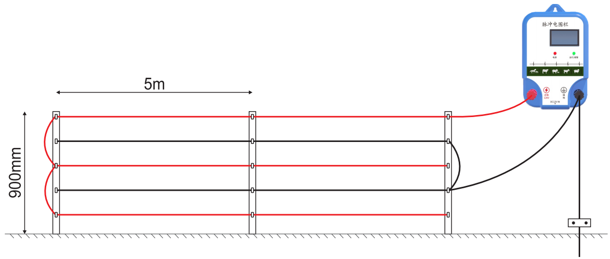然後接上畜牧電子圍欄主機並給主機通上電即可,使用非常簡單不需要複雜的技術含量。接線方式如下圖 :