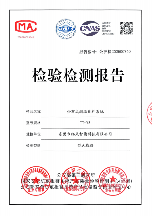 分布式測(cè)溫光纖型式檢驗報(bào)告